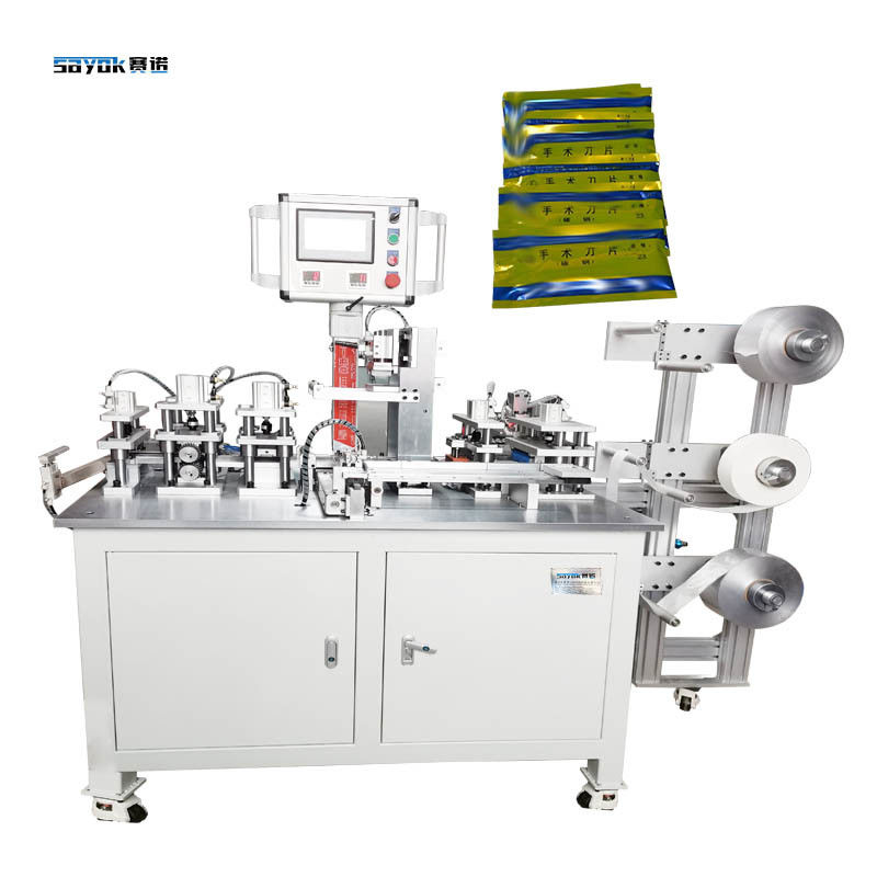 É especialmente desenvolvido para embalar lâminas cirúrgicas individualmente, que serão rolos de papel de 3 camadas, com camadas de papel de alumínio,A camada média será papel anti-ferrugem para que as lâminas cirúrgicas não ferrugem durante a vida útilEsta característica faz com que seja uma escolha popular para instalações médicas e fabricantes de instrumentos cirúrgicos que precisam garantir que os seus produtos estejam adequadamente protegidos durante o transporte e armazenamento.O modo de embalagem de vedação de quatro lados da máquina garante que as lâminas estejam completamente seladas, evitando qualquer contaminação ou danos durante o transporte.